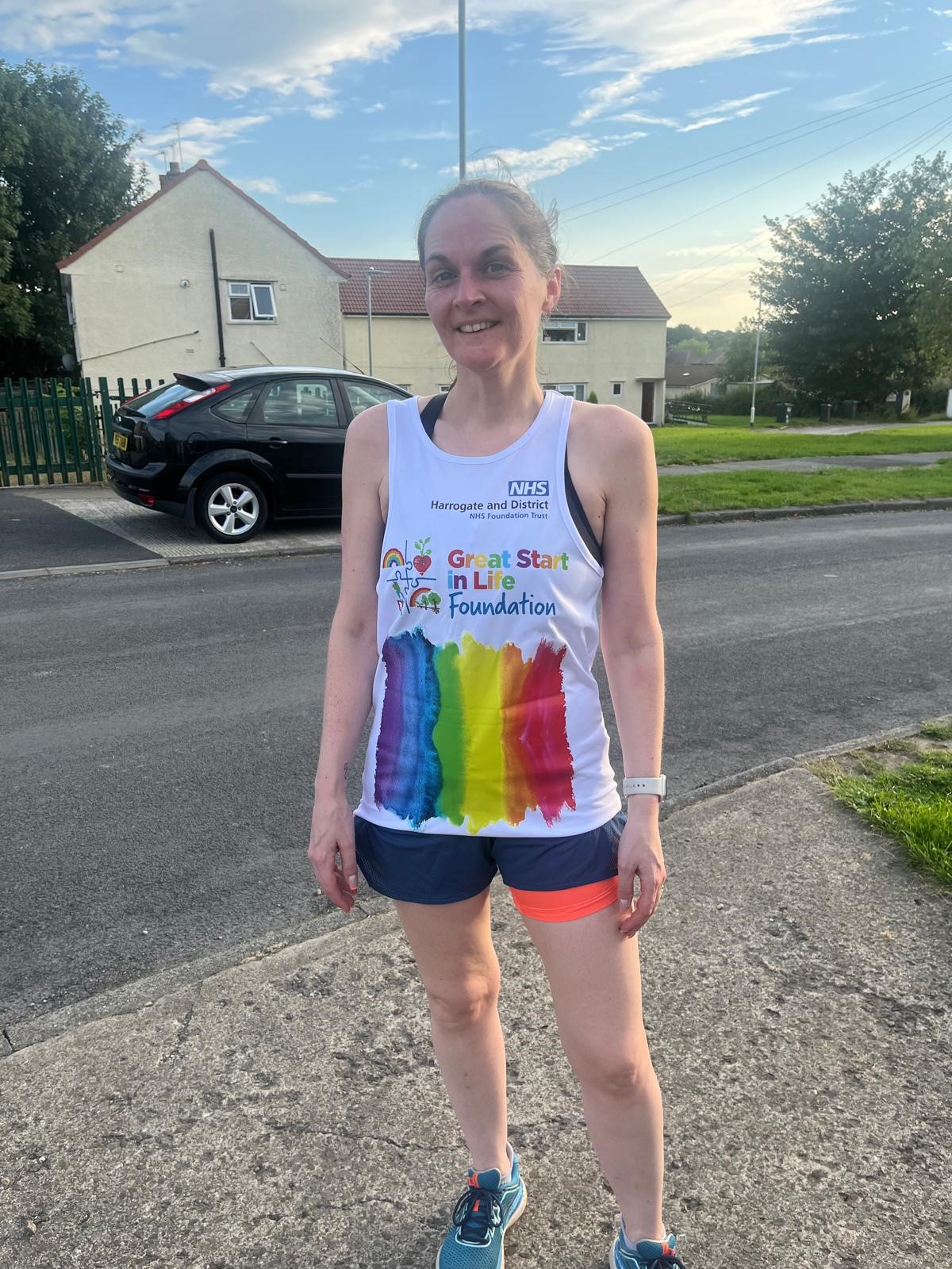 Yvonne Campbell in a Great Start in Life Vest and running gear